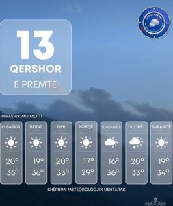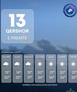 Temperaturat e ajrit do të ulen lehtë në mëngjes, por mbeten konstante në mesditë duke u luhatur nga 13°C vlera më e ulët deri në 36°C vlera më e lartë në rang territori.
