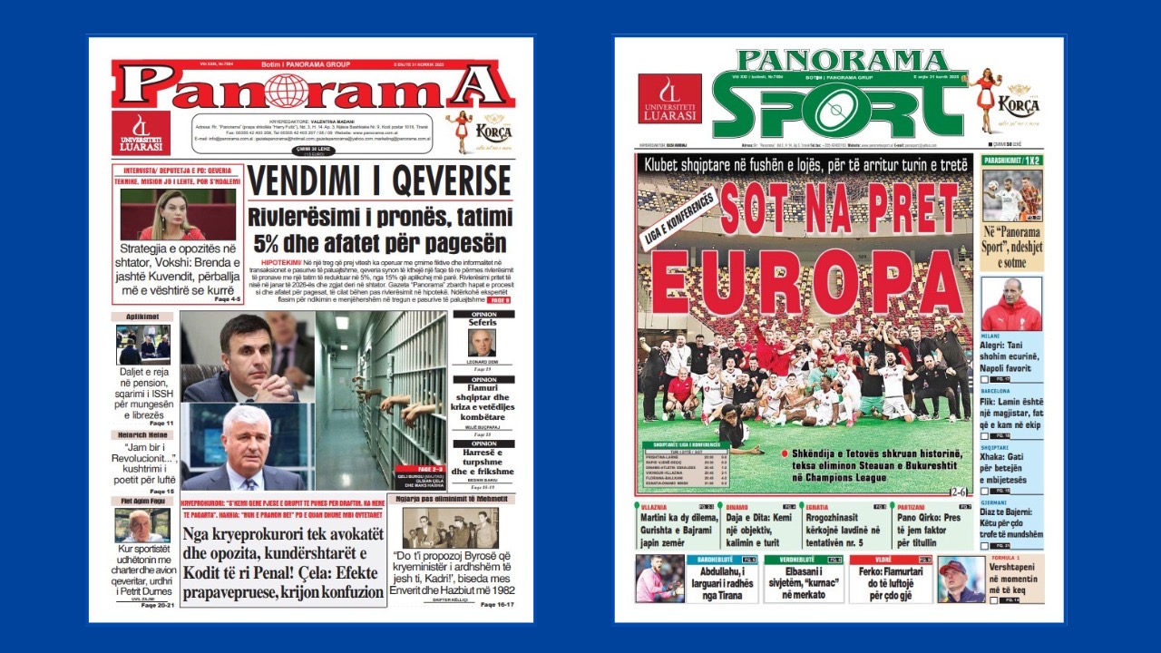 Kompania jonë mediatike gjithmonë synon e punon që të ofrojë lajme me përmbajtje cilësore për lexuesit. Së fundmi, shqyrtuam mundësinë e mbylljes së gazetave print “Panorama” dhe “Panorama Sport”, në kuadër të një strategjie për dixhitalizim dhe përqendrimi në kanalet online, duke u përshtatur me trendet e zhvillimit teknologjik.