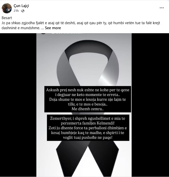 Pas ndarjes nga jeta të Eldion Kelmendit, vëllait të reperit të njohur Gjesti (Besart Kelmendi), rrjetet sociale janë mbushur me mesazhe ngushëllimi dhe dhimbjeje.