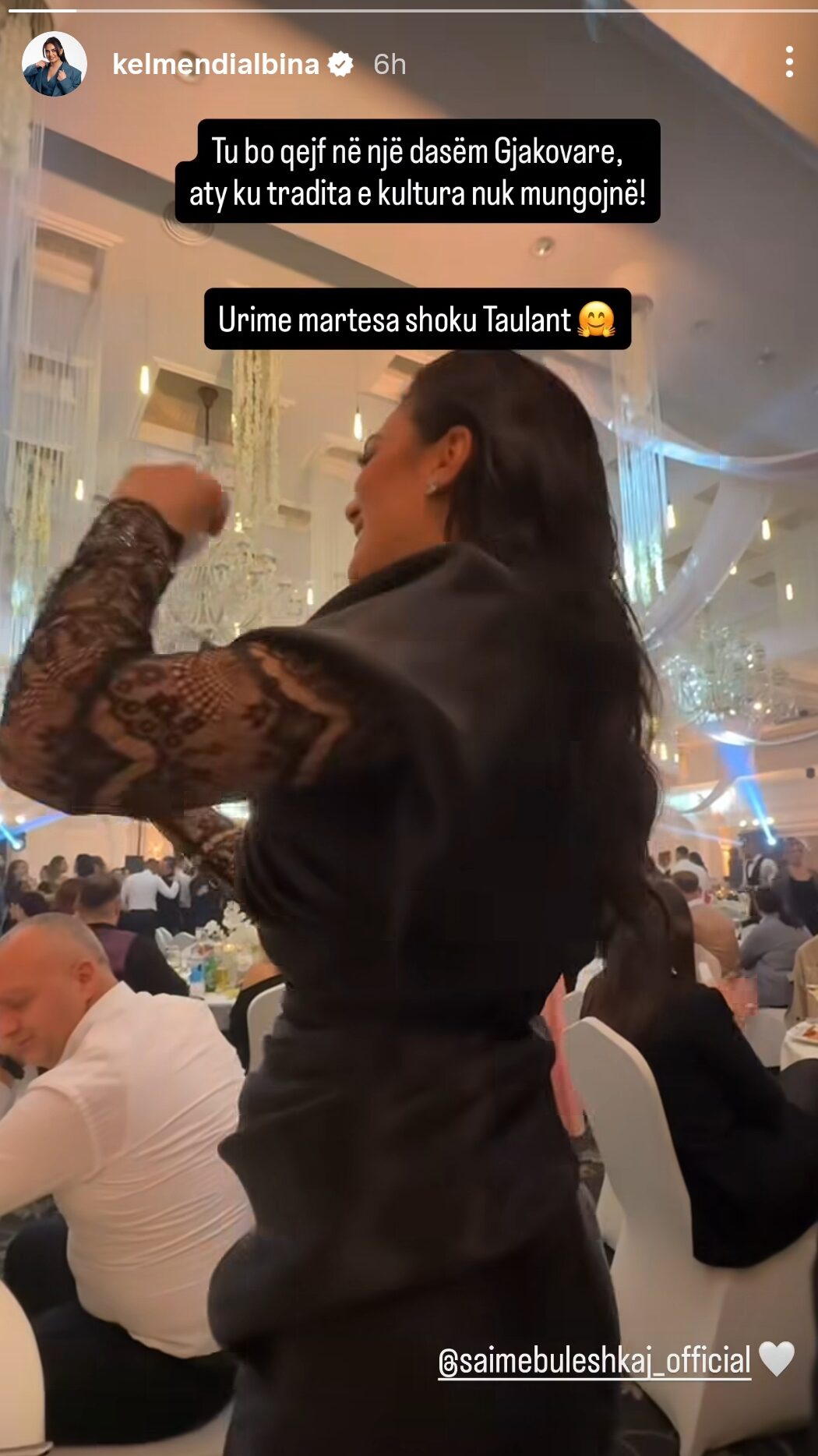“Tu bo qejf në një dasëm Gjakovare, aty ku tradita e kultura nuk mungojnë! Urime martesa shoku Taulant 🤗”