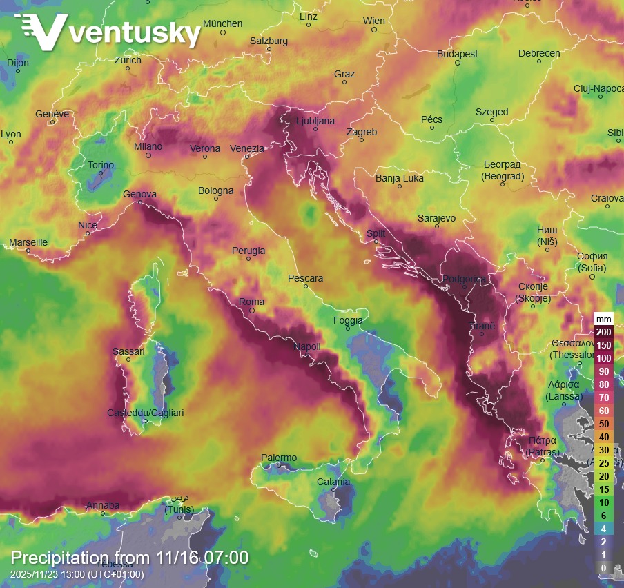 “Java e re do të sjellë reshje të dendura në Mesdhe. Gjatë shtatë ditëve, përgjatë brigjeve perëndimore të Ballkanit mund të bien deri në 300 mm reshje dhe shumë zona të tjera 100–200 mm. Përmbytjet dhe dëmet janë të mundshme në rajonet e prekura.”