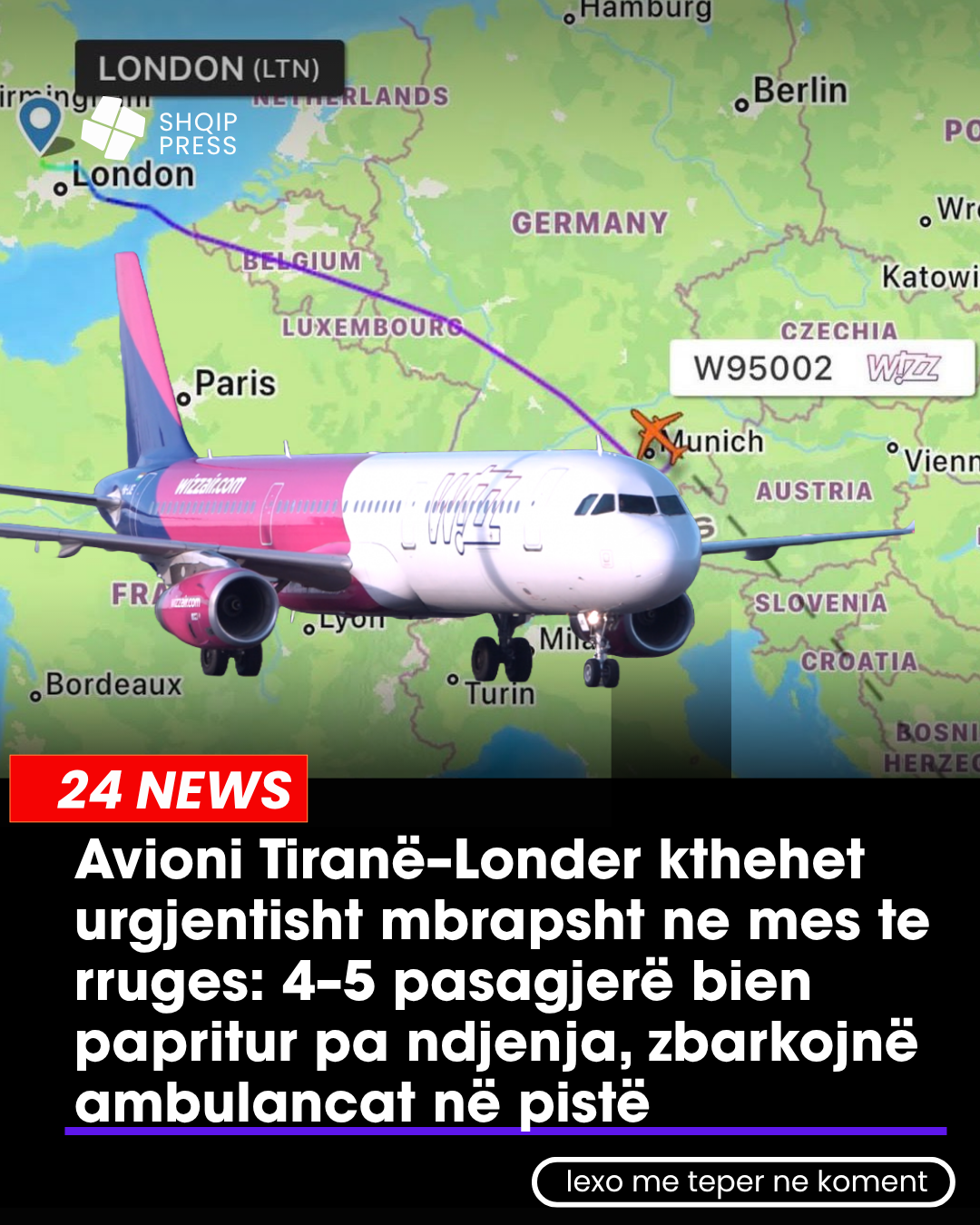 Fluturimi, që ishte parashikuar të mbërrinte në Aeroportin e Luton në orën 10:55, u ndal papritur gjatë itinerarit dhe, pasi kaloi pranë Mynihut, piloti vendosi rikthimin urgjent drejt Londrës. Sipas burimeve për JOQ Albania, vendimi u mor pasi 4–5 pasagjerë u sëmurën në mënyrë të menjëhershme, duke shfaqur simptoma të fikti dhe humbje ndjenjash.