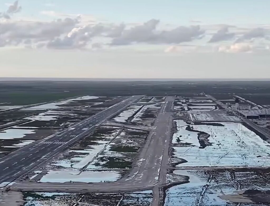 Fluturimet e para projektoheshin të bëheshin në verën e vitit 2025, por kjo jo vetëm që nuk ndodhi por tashmë zona është përmbytur duke ngritur dyshime serioze për sigurinë dhe funksionalitetin e tij në të ardhmen. Sakaq deri më tani autoritetet nuk kanë dhënë ende një sqarim zyrtar për praninë e ujit në pistë.