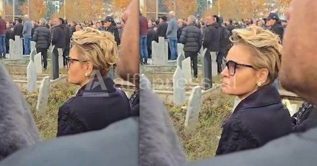 E veshur me të zeza dhe me syze, Kryemadhi është fotografuar në varrezat e Tetovës mes njerëzve të cilët ishin mbledhur për Shpatin.