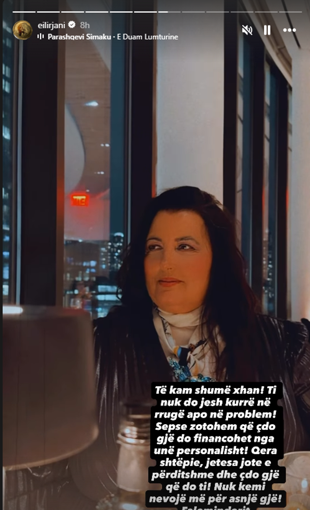 “Të kam shumë xhan! Ti nuk do jesh kurrë në rrugë apo në problem! Sepse zotohem që çdo gjë do financohet nga unë personalisht! Qera shtëpie, jetesa jote e përditshme dhe çdo gjë që do ti”.