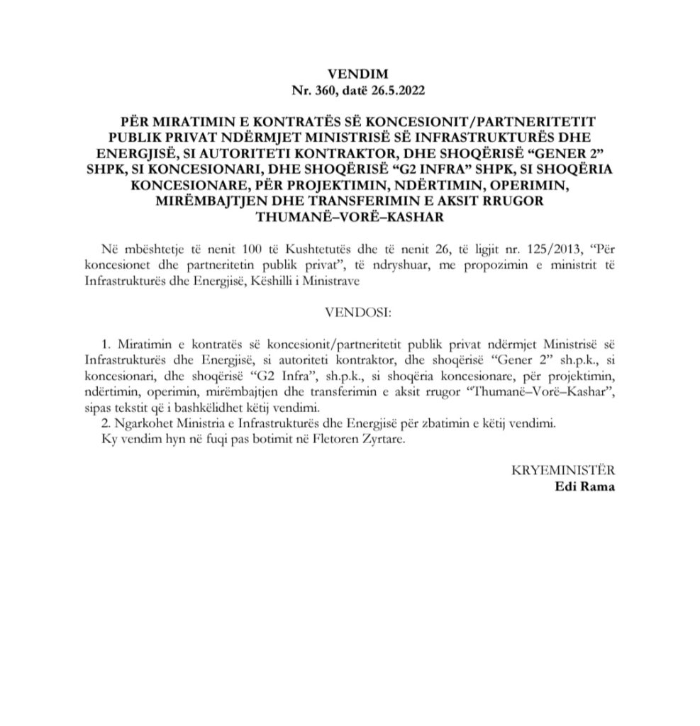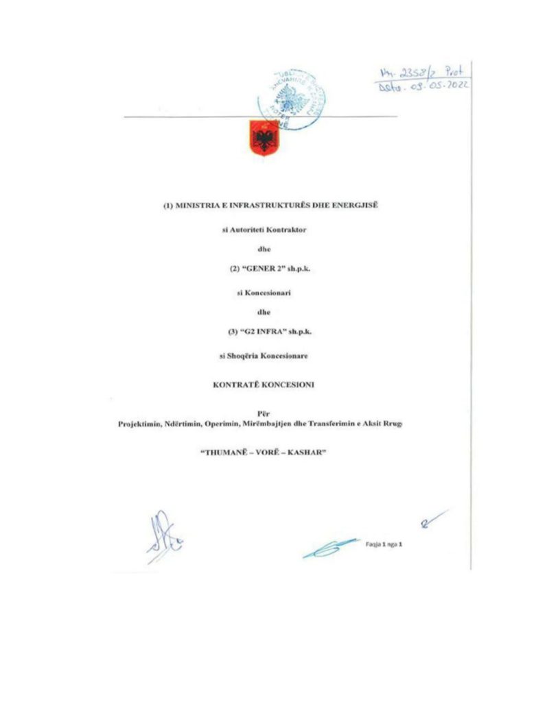 Ndërkaq, koncesioni i rrugës Thumanë -Vorë-Kashar do t’u kushtojë shqiptarëve 1.3 miliardë euro (1.56 miliardë euro me TVSH), ku përfitues është kompania e Bashkim Ulaj, i cili hyri në treg dhe pasurua nga mënga e Sali Berishës, kur erdhi në pushtet në vitin 2005.